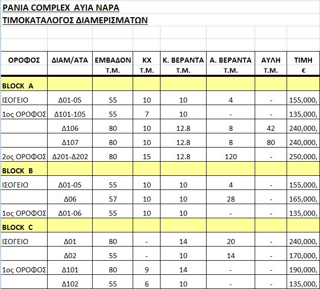 Το συγκρότημα θα ανεγερθεί στη Αγία Νάπα εντός του πυρήνα του χωρίου . Το συγκρότημα αποτελείται απο 30 τουριστικά διαμερίσματα τα 22 του ενός υπν. εμβαδού 55 Τ.Μ. περίκλειστου χώρου και 10 Τ.Μ. καλυμμένης βεράντας το κάθε ένα και 8 των δυο υπν. εμβαδού 80 Τ.Μ. περίκλειστου χώρου και 15 Τ.Μ. καλυμμένης βεράντας επιπλέον περιλαμβάνει 35 χώρους στάθμευσης (οι 31 χώροι στάθμευσης υπόγειοι και 4 στο ισόγειο) , πισινά , χώρους πρασίνου και είσοδος ελέγχου του συγκροτήματος.
